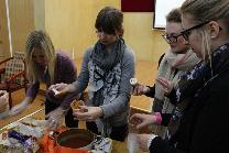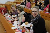 活动以德国小教们的激情演唱开场,赢得了场下观众的挥手呼应和热情欢呼。此次德语角紧密围绕“美食”这一主题开展进行,小教们品尝中国地域特色的美食,比如麻花、糖葫芦、煎饼等。在品尝美食之余,同学们与小教亲切交流心得,小教们也给我们展示了德国各个地区不同的美食。值得一提的是,小教还带来了原汁原味的德国美食,与现场同学们一起分享。现场气氛十分融洽,随着交流的逐渐深入,深厚情谊也随着美食的飘香留在了心头。