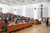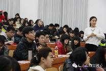 郝老师首先从德语的学习特点展开,她讲到,德语作为一门较难的小语种,在学习的过程中难免会遇到种种困难,同学们要善于找窍门做到最优化途径学习,但是任何学习的过程都没有真正的捷径,遇到困难必须迎头而上,积极克服;随后,郝老师从听、说、读、写四个方面详细的向同学们们介绍了国内德语考试的基本内容,并从题型入手,通过对往年真题的回放,主要向同学们展示了阅读题部分的具体篇幅和考查形式,并建议同学们平时注重扩充词汇量,加快阅读速度来适应不同层次的阅读;在的最后互动环节中,郝老师耐心解答同学们在德语学习中遇到的各种问题,并提出了适应当前学习情况的具体建议,同学们用热烈的掌声感谢郝老师的精彩演讲。