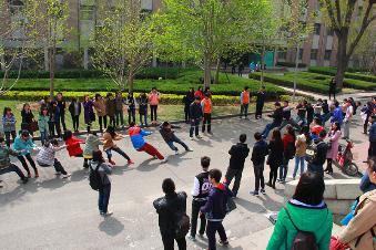 3月27日中午,学院2014级春季拔河比赛于北校区图书馆南侧马路拉开序幕。2014级各班同学积极参与,展现出国交学子的青春活力。