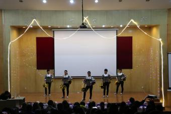 一支动感十足的舞蹈《Oh!》拉开帷幕,在主持人简明欢快的开场后, “Running Girl”之撕名牌大战游戏,吸引了同学们及外教的踊跃参与,外教气势毫不逊色,一把撕下“名牌”,把现场游戏气氛推向了高潮。“话在口,心难开”部分展示了男女同学们对于感情上一些问题的想法,一些同学无厘头的回答更是让人捧腹大笑;《Tik Tok》和《我可以》亦动感亦深情的两首歌曲为现场气氛增色不少,大家一起挥动荧光棒,成了音乐的海洋;活动最后在串烧舞蹈中落下帷幕。整场活动丰富多彩,精彩纷呈,高潮迭起,气氛活跃热烈。