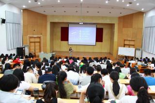 围绕着“德国留学经历—到底给我们带了什么”主题展开,结合自身经历,主讲人温春然告诫学弟妹们要具有独立生活能力,形成良好的行为习惯。而正是因为留德的四年时间,她成长为一个独立自主的人,并且具有了严谨的时间观念,这些是成长经历中无可替代的一部分。对于现在的德语学习,温春然认为这在将来也会成为我们的职场优势。因为同学们掌握的不仅是一门语言,也是一种技能。“未来的道路其实很宽”,这句话发人深思,同学们的未来其实有更多的选择,只要肯努力,梦想一定不会止步于梦想。与此同时,她给大家列举了许多幽默诙谐的学习小插曲,旨在点明德语的重要性。大一的德语历练是今后学习的根基,拥有坚实的基础,在以后的专业课堂中便会如鱼得水。