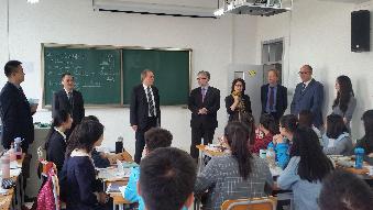 座谈会结束,白潇乐一行走进国交学院教室,与正在学习德语的学生进行交流,勉励他们学好德语,为专业学习打下基础,他会在德国等着大家。