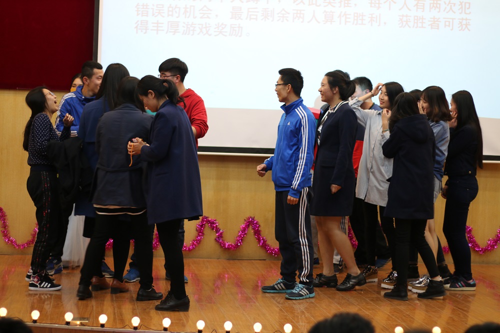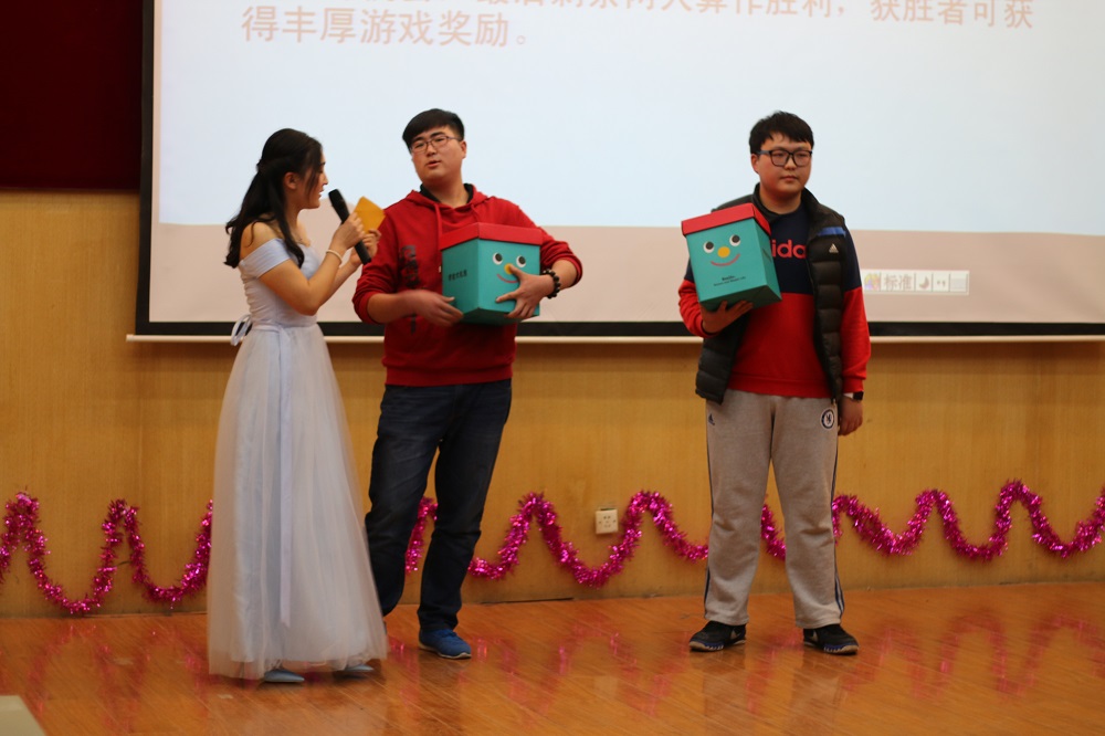 伴随着倒计时声,晚会隆重上演。由五位女生为大家带来的《wiggle wiggle 》街舞表演动感热辣,点燃了观众们的热情。小品《天下无贼》形象展示了公交车上遭遇两个“笨蛋劫匪”,乘客与其斗智斗勇的舞台喜剧,演员们精湛的演技让同学们捧腹大笑。在接下来的游戏时间,同学们踊跃参加“你要几碗胡辣汤”游戏,经过几轮激烈角逐,两位男选手获得胜利并获得了精美的小礼品。游戏结束后,由多位男生倾情献给女生节的特别节目重磅登场,男生们头戴假发,身着西装,表演完舞蹈《dangerous》后又快速换装为大家带来了反转性别表演《知心爱人》,令同学们眼前眼一亮,掌声与叫好声相互呼应、连绵不断。最后,晚会在一曲悠扬婉转、回味深长的《我不难过》中落下帷幕。