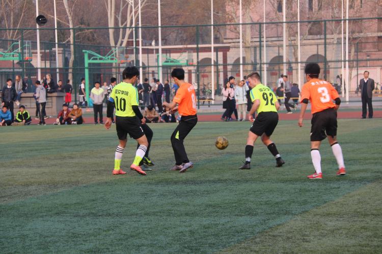 3月31日下午4时,国际交流学院对战水土学院的比赛如期进行,打响了今年国交学院山农大足球联赛的第一战。