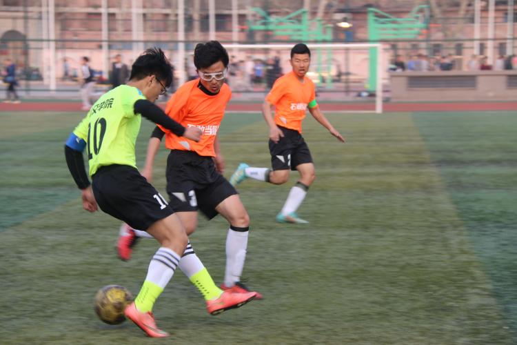 比赛伊始,国交队员身着荧光绿的队服,迅速进入比赛状态,赛场旁边加油呐喊助威声持续不断。面对水土学院的强烈攻势,我院的后防线就像一堵难以逾越的城墙,完美的拦下了几乎所有的进攻。