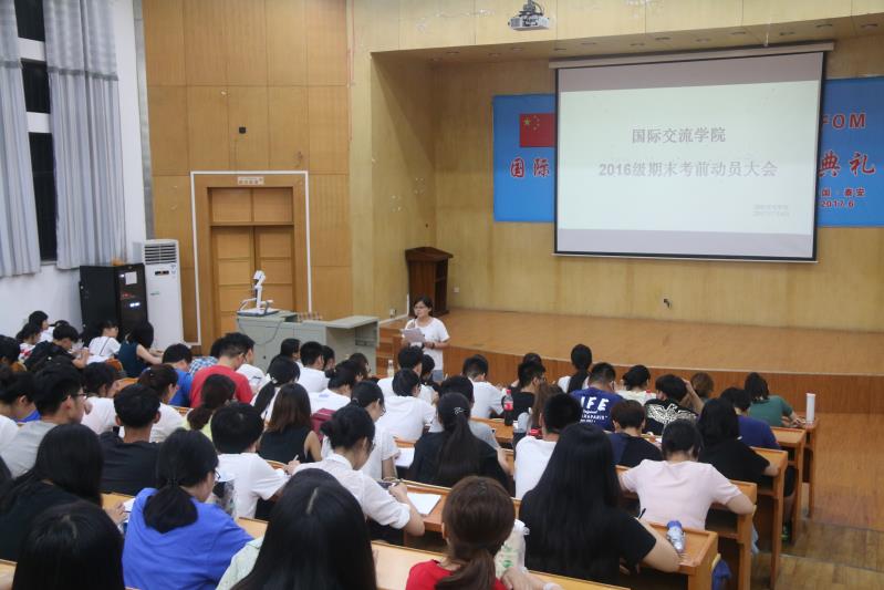 7月4日晚国交学院于5n124报告厅举行了2016级德语B1考试考前动员大会。本次大会由党委副书记吕建设主持,导员张振华老师、张蓓老师以及2016级全体学生出席本次大会。