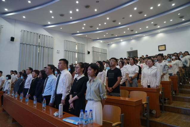金秋时节,秋风送爽。在庄严的国歌声中,2020级新生开学典礼正式开始。2018级优秀学生代表孙睿思发言,与新生分享她的大学经历。她对新生们提出四点建议,即学会诚信做人,学会认知与独立思考,学会自我约束,积极锻炼自我。随后,由2020级新生代表高梓越上台发言。他倡议20级同学们在宝贵的大学时光里努力学习专业知识,提高综合素质,练就过硬本领。接着,优秀教师代表李佳在发言中希望新同学在新的起点上更要懂得感恩和珍惜,懂得自我管理与自我规划,不畏德语艰难,保持学习热情。