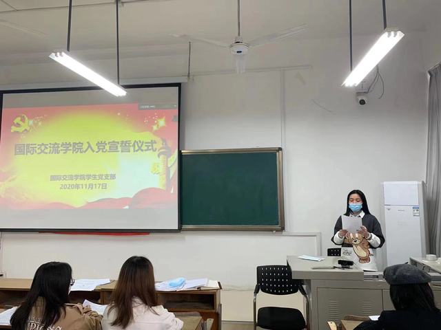 11月17日,国交学院在11号楼T402举办2020年新党员入党宣誓仪式,学院学生党支部全体党员参加。