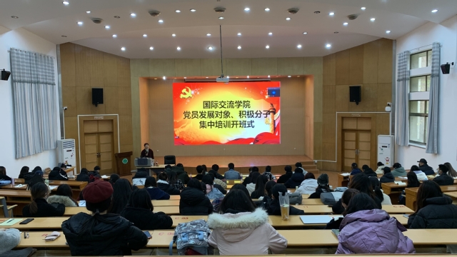 11月21日下午2:30, 国际交流学院在5N124举行党员发展对象与积极分子集中培训开班式,学院党委副书记宋洁为全体学员上党课,2017、2018级党员发展对象和全体入党积极分子参加。