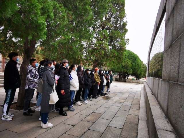 巍巍岱宗,阅尽革命战史;悠悠汶水,凭吊烈士忠魂。泰安革命烈士陵园共有514名烈士长眠于此,其中有335名无名烈士。学生入党积极分子们从园区右侧进入参观。期间同学们仔细地观看烈士群雕像、烈士纪念碑以及烈士墓,了解每位烈士的成长及革命历程,感受着烈士们为党的和祖国的事业与反动派坚决斗争的革命精神。