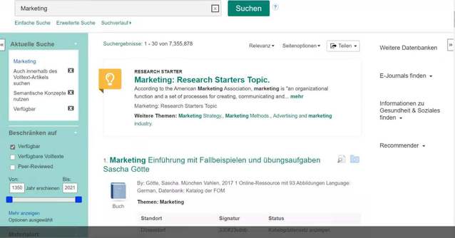 信息检索培训,提高使用效率。为确保德方购买资源得到有效利用,保证学生在国内能够流畅使用网上图书资源。FOM驻泰工作人员组织专人培训学生,学院团委专门安排熟悉使用网上学习资源的优秀学长通过腾讯会议线上指导学习利用FOM购买的德国图书馆资源,学习获取文献全文的方法和技巧。学生只需登录FOM校园网站,进入书目检索服务数据库(EBSCO)就能直接检索所需文献并进行实时阅读和下载。网上图书馆的开放与使用使得学生们可以通过电脑或移动端等方式轻松获得远在欧洲的海量文献资源安心学习。