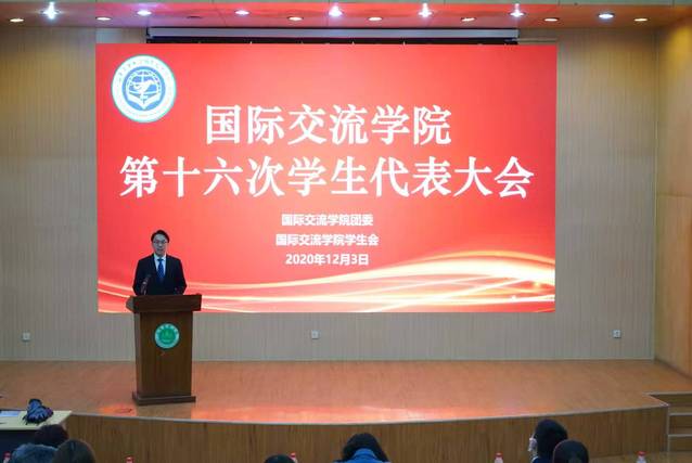 12月3日中午12:30,国际交流学院在5N124报告厅召开第十六次学生代表大会。学院党委副书记宋洁、团委书记李娜、辅导员许晓云、邱岳和各年级学生代表出席会议,会议由第15届学生会主席团成员李佳豪主持。