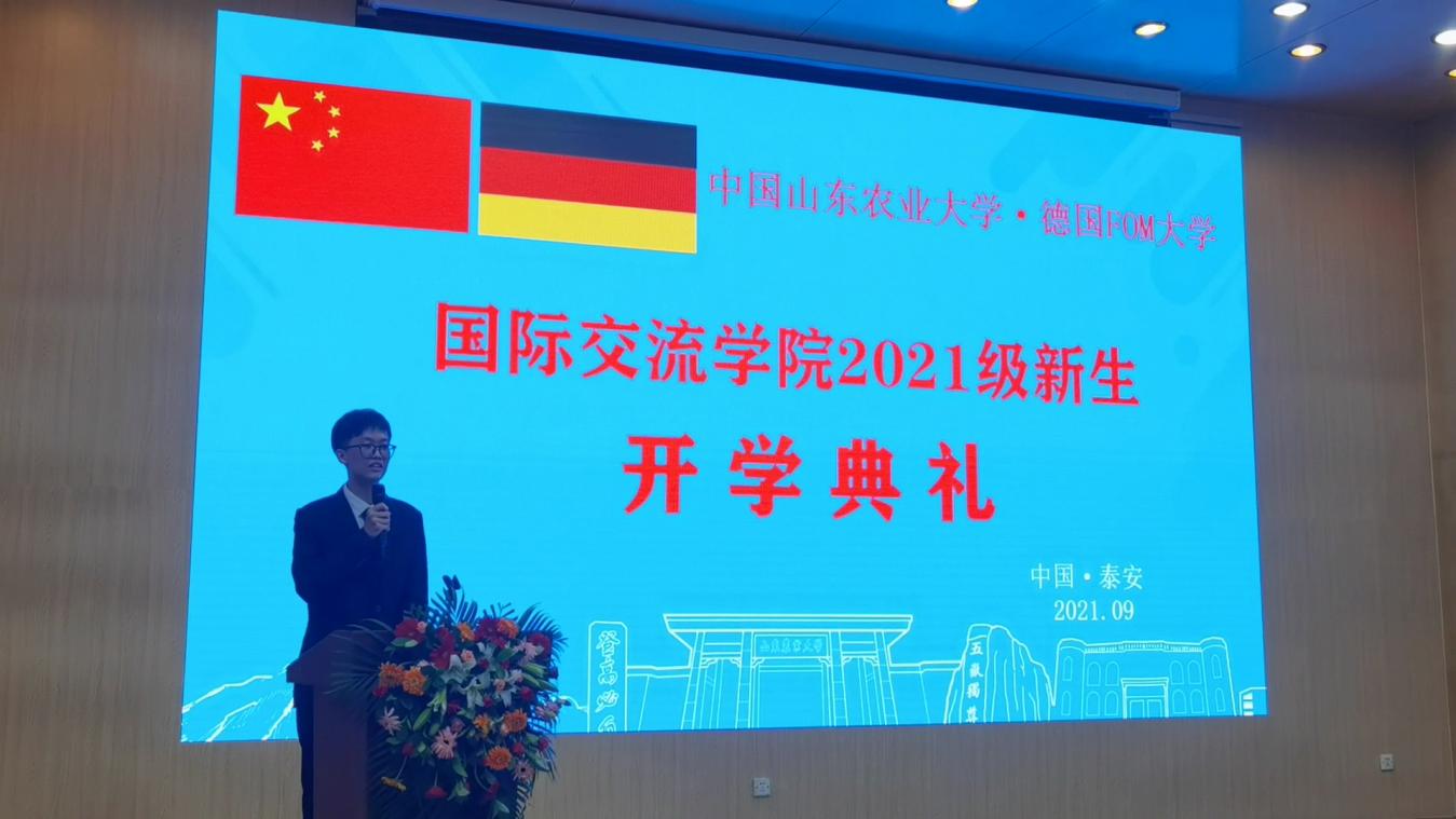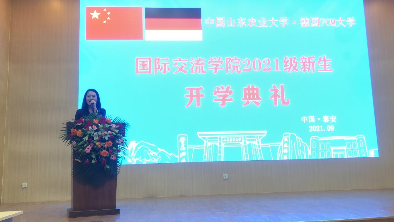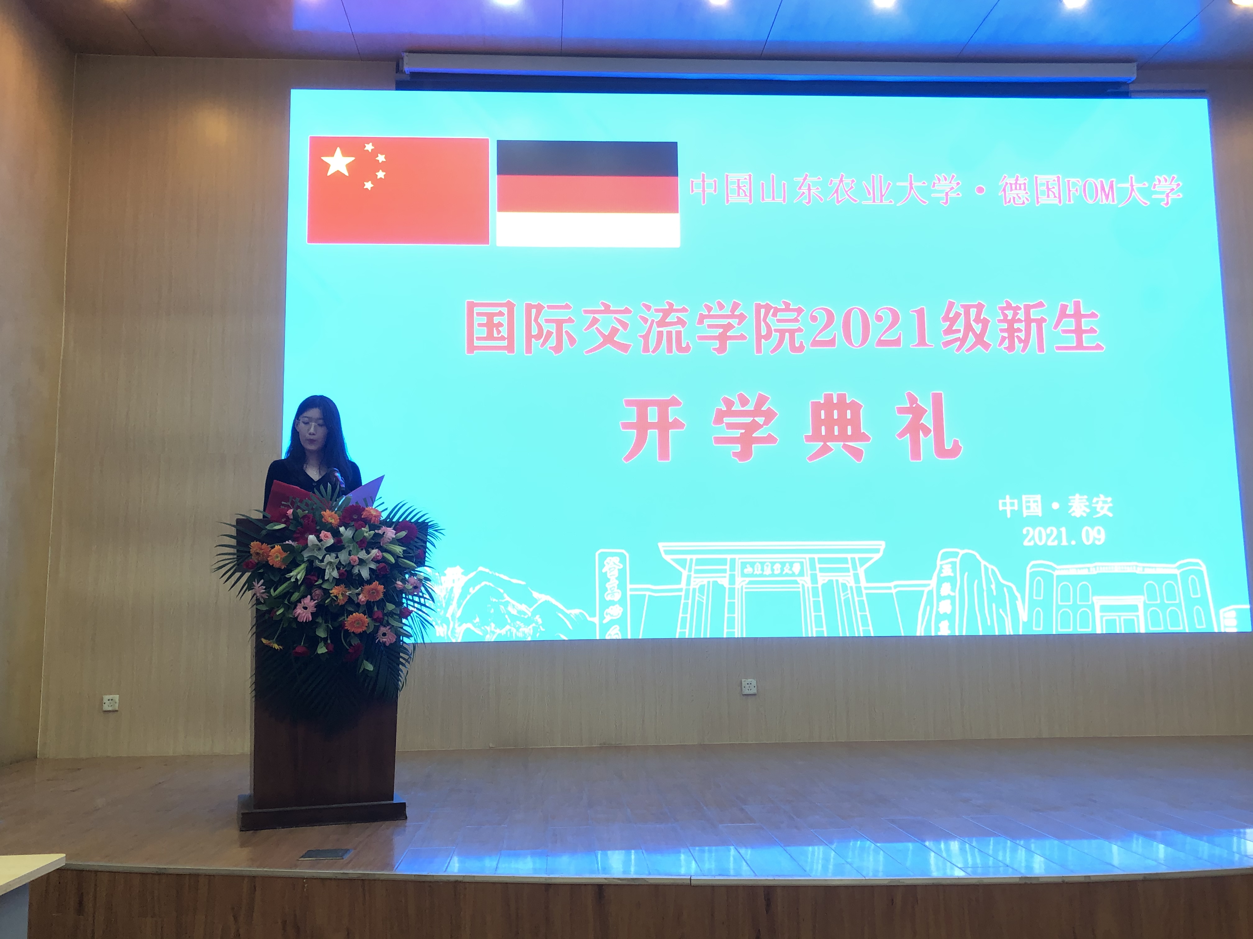 9月18日下午,山东农业大学国际交流学院2021级新生开学典礼在5N 124报告厅隆重举行,学院领导、全体教职工和2021级新生欢聚一堂,共同见证这场典礼。开学典礼由学院团委书记李娜主持。