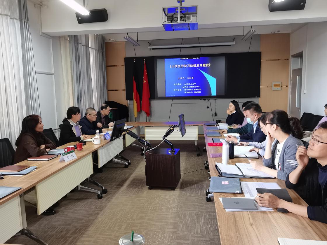 第二阶段班主任工作研讨环节,学工处大学生心理教育中心主任王红菊老师就《大学生的学习动机及其激发》作专题讲座,并与学院班主任老师们互动交流。王红菊结合学院德语学习任务重、压力大的特殊性,以大学生四年成长的特点与规律及班主任不同阶段的工作特点作为切入点,从“3W”引入,着重分析了学习动力机制、种类、结构与激发策略,通过丰富的案例深入浅出地为老师们讲解了与学生交往、激发学习动机的诀窍与方法。