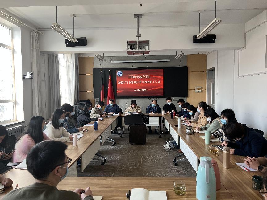 2月27日,国际交流学院召开党政联席会扩大会议、全体教职工大会,安排部署新学期各项工作。