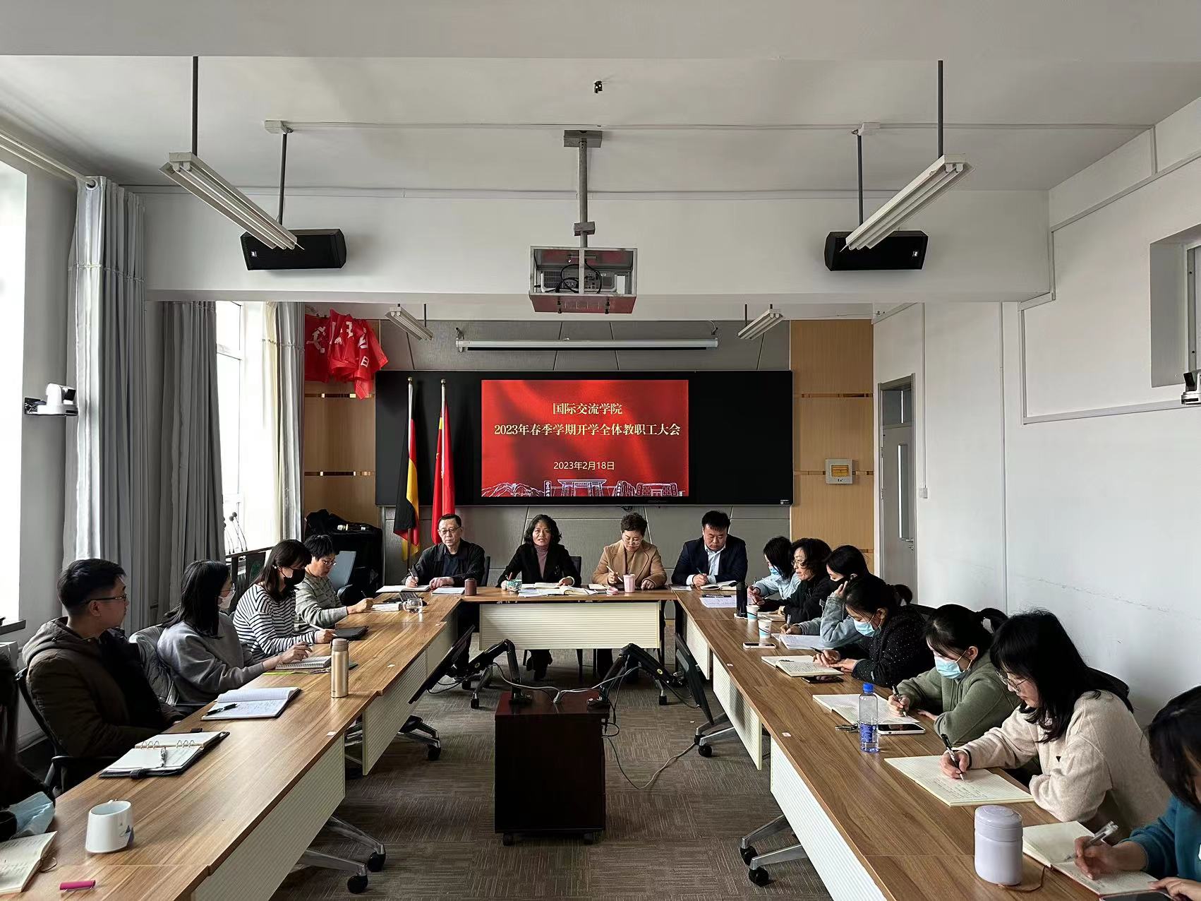 2月18日下午,国际交流学院召开2023年春季学期开学全体教职工大会,学院副院长钟杰主持会议,学院党委书记、院长李伟传达学校重要会议精神并安排部署本年度学院重点工作。