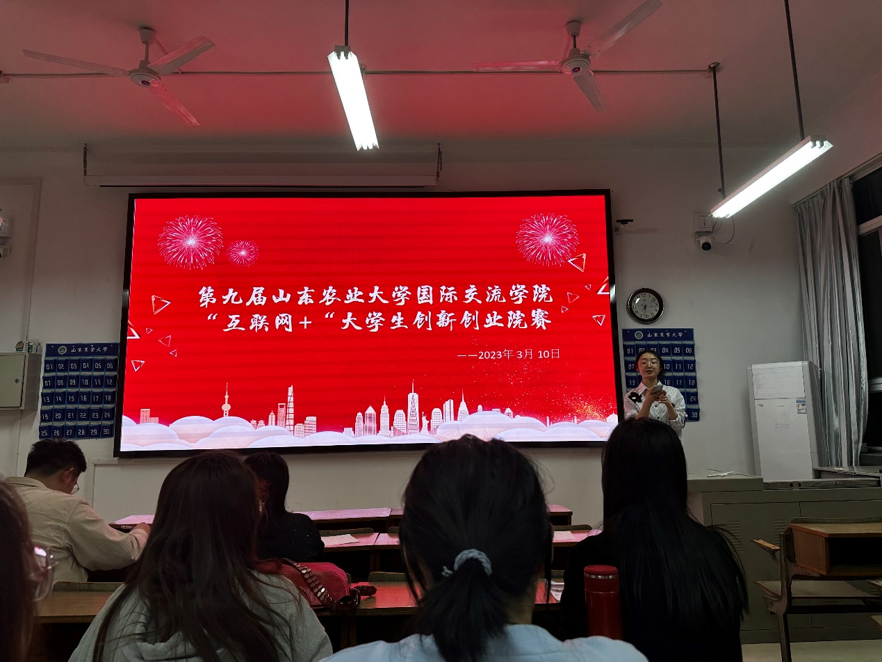 3月10日19时30分,国际交流学院在11号楼T402教室举办山东农业大学新业态第九届“互联网”+大学生创新创业院赛。