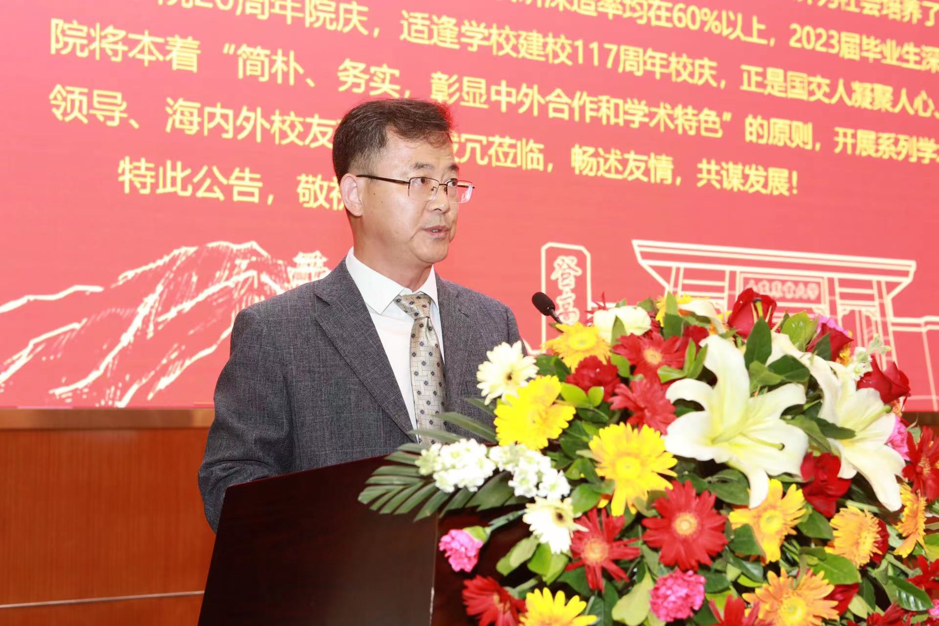 会议开始,学院院长付道林发布了《山东农业大学国际交流学院20周年院庆公告(第一号)》。诚邀海内外校友重回母校聚首,追忆往日情怀,畅叙师生深情,共商共议学院发展大计。