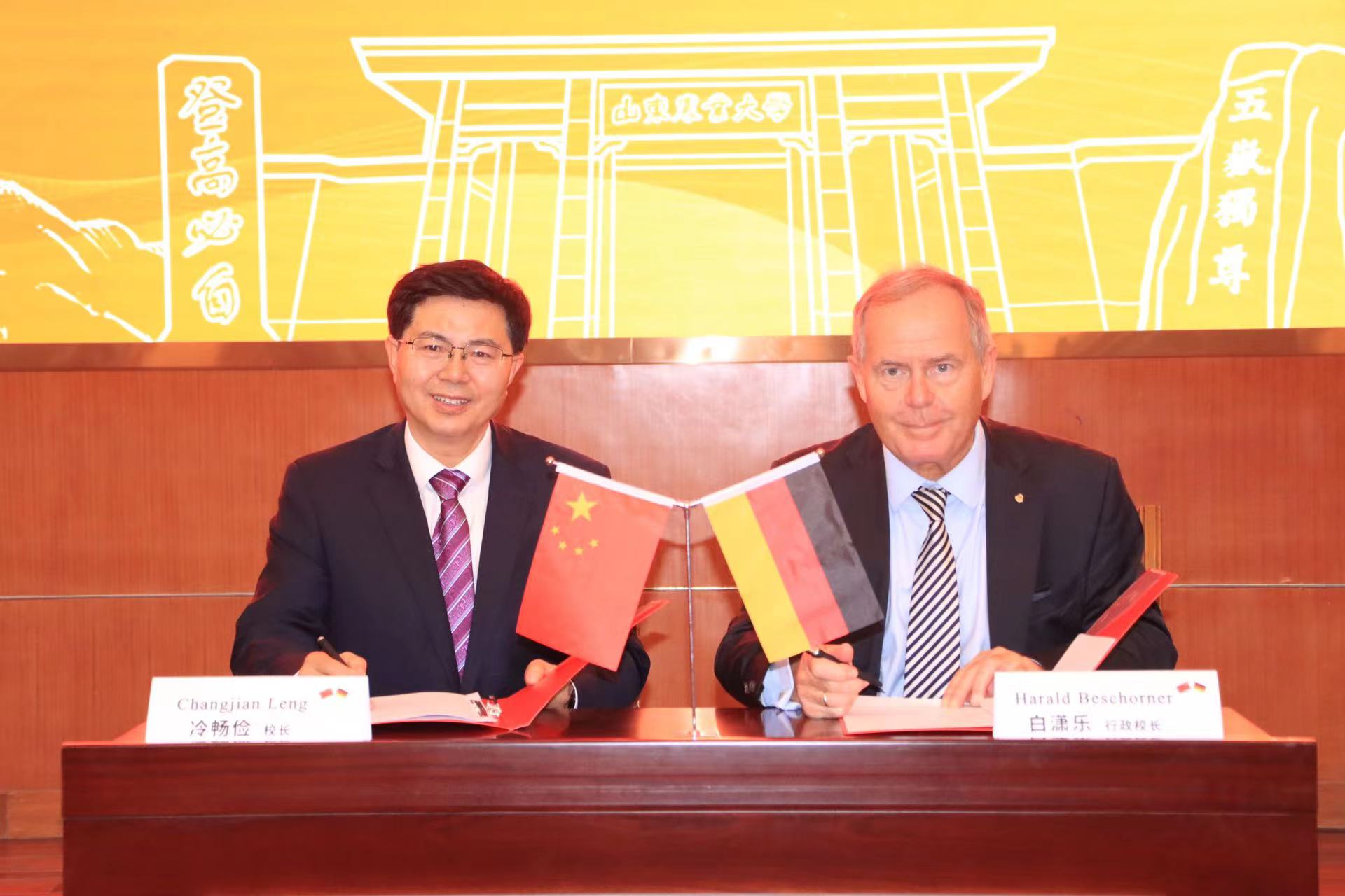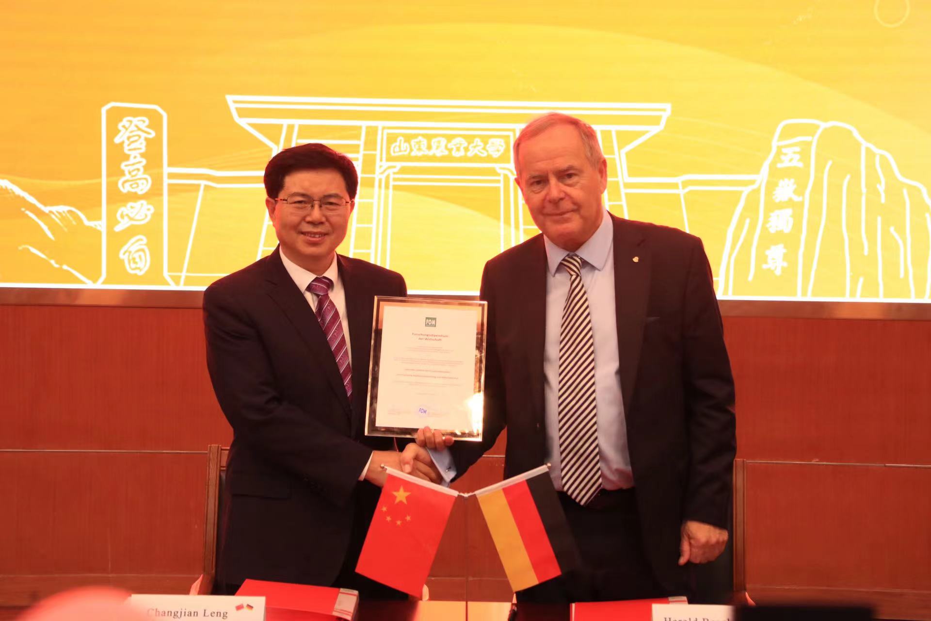 会议期间,冷畅俭与白潇乐共同签署《山东农业大学与德国埃森经济管理应用技术大学本硕连读协议》并进行捐赠仪式。校友会秘书长亓爱收代表学校宣读成立德国校友组织筹备委员会的通知。