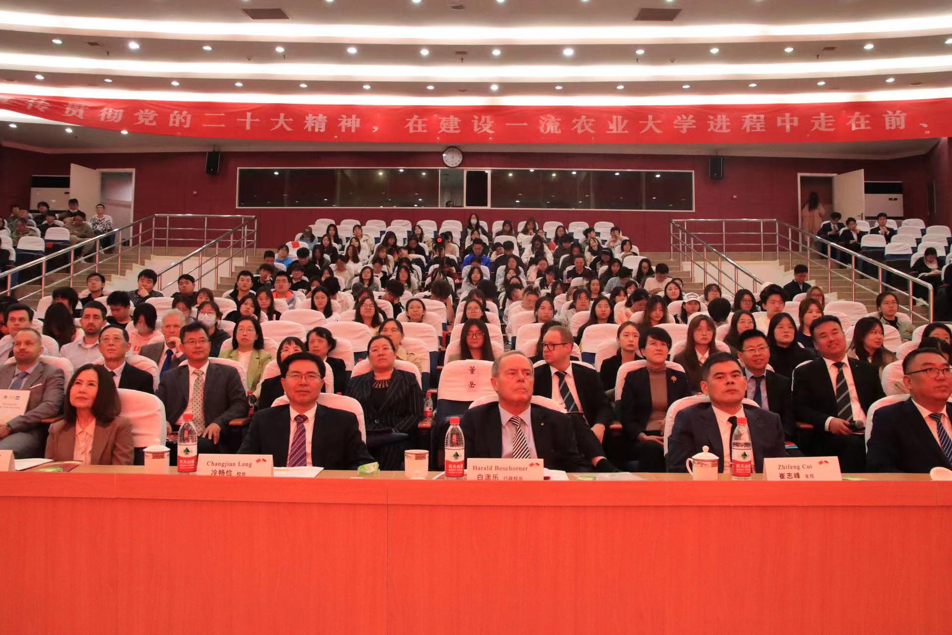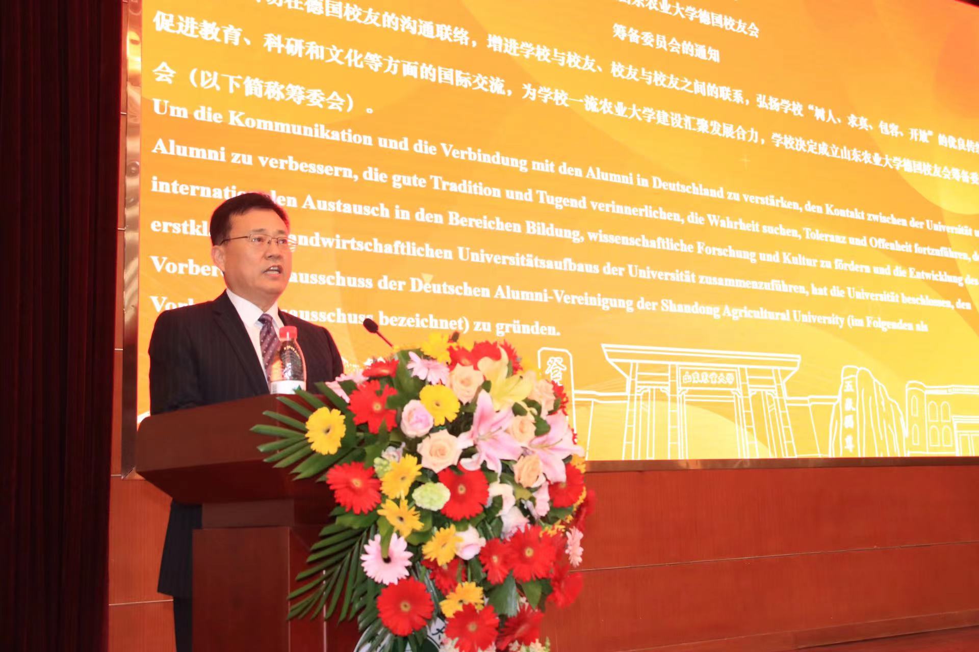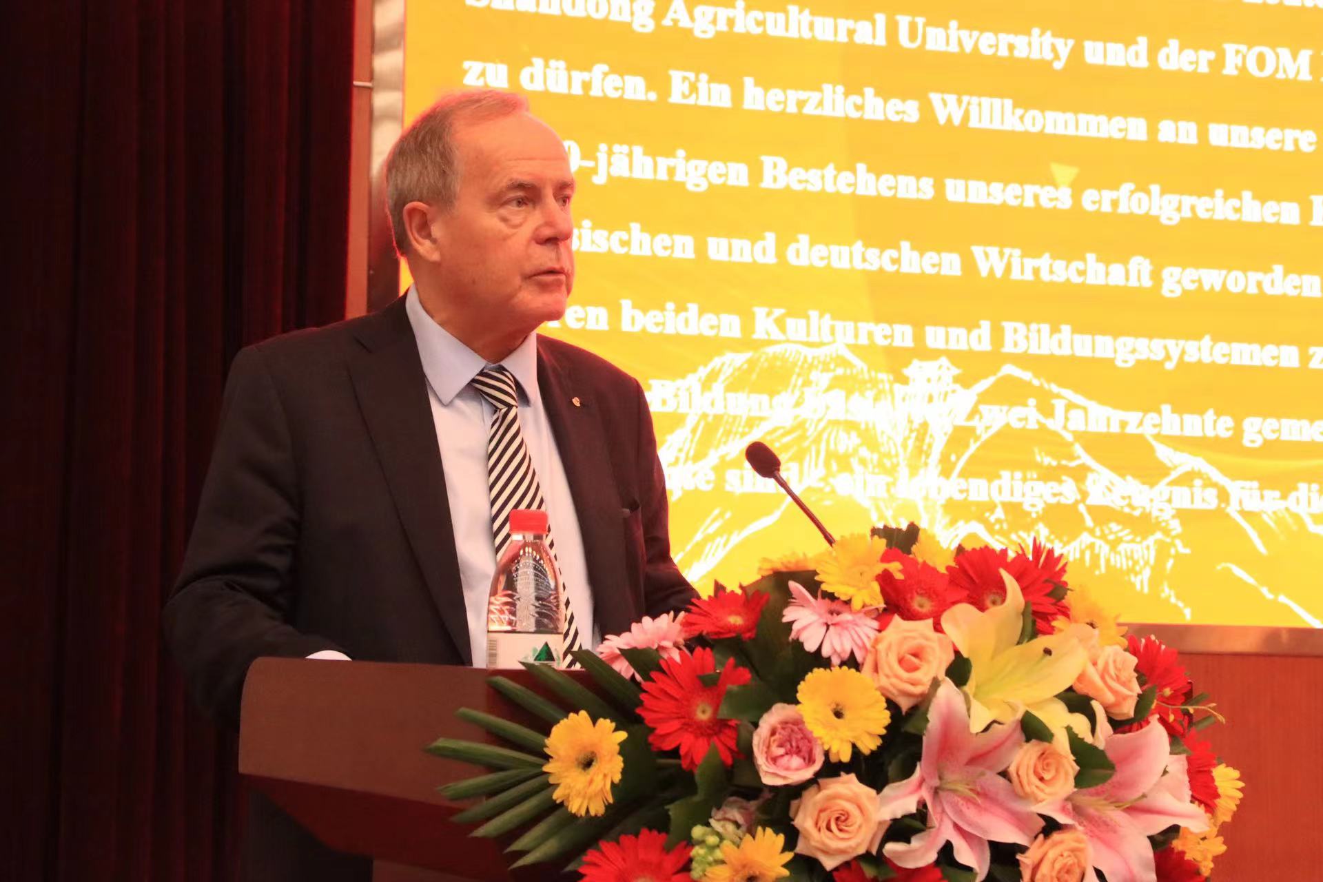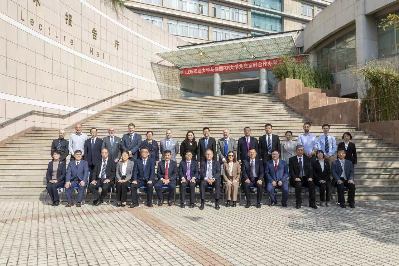 10月25日上午,山东农业大学与FOM大学共庆友好合作办学二十周年暨山东农业大学德国校友组织筹备委员会成立会议在文理大楼报告厅举行。学校党委副书记、校长冷畅俭,FOM大学行政校长白潇乐出席庆典活动并致辞,学校副校长林海主持活动。