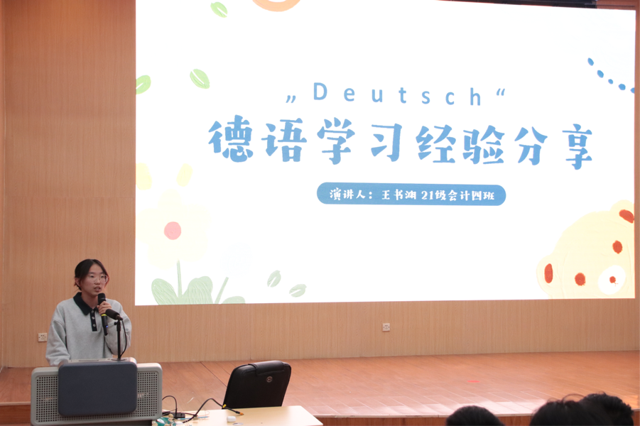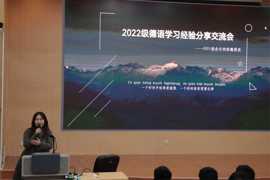 为进一步加强学风建设,充分发挥优秀学子的模范带头作用,帮助大一学生树立明确的学习目标。11月22日,国际交流学院举办优秀学子经验分享会,学院21级四位优秀学子为23级全体同学带来德语学习经验和方法,帮助23级同学在接下来的学习中蓄势前行。