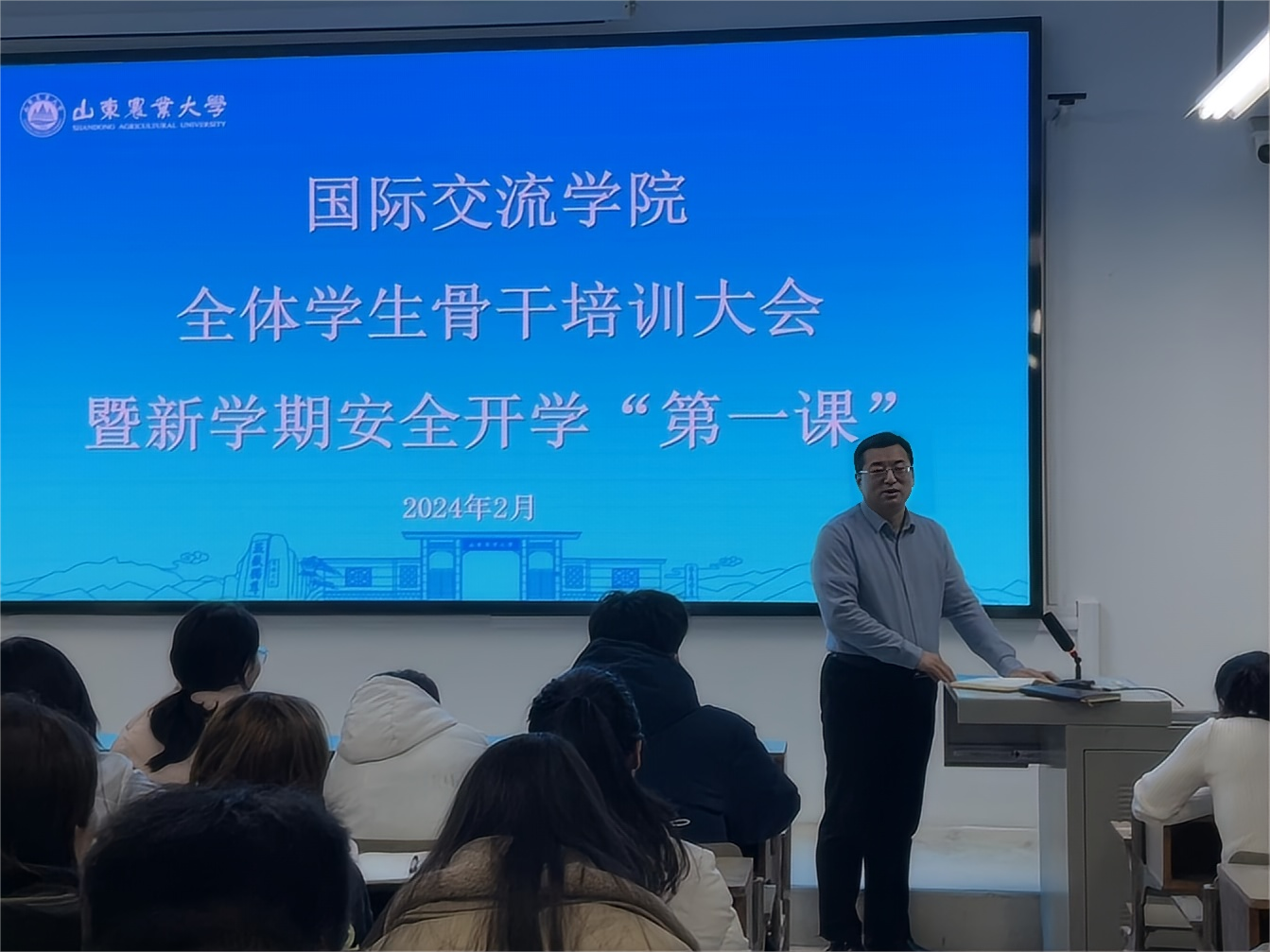 2月28日晚,国际交流学院在11号楼T402教室召开学生干部培训大会暨安全开学“第一课”。学院党委副书记肖秋生,全体辅导员及全体学生干部参加本次会议。
