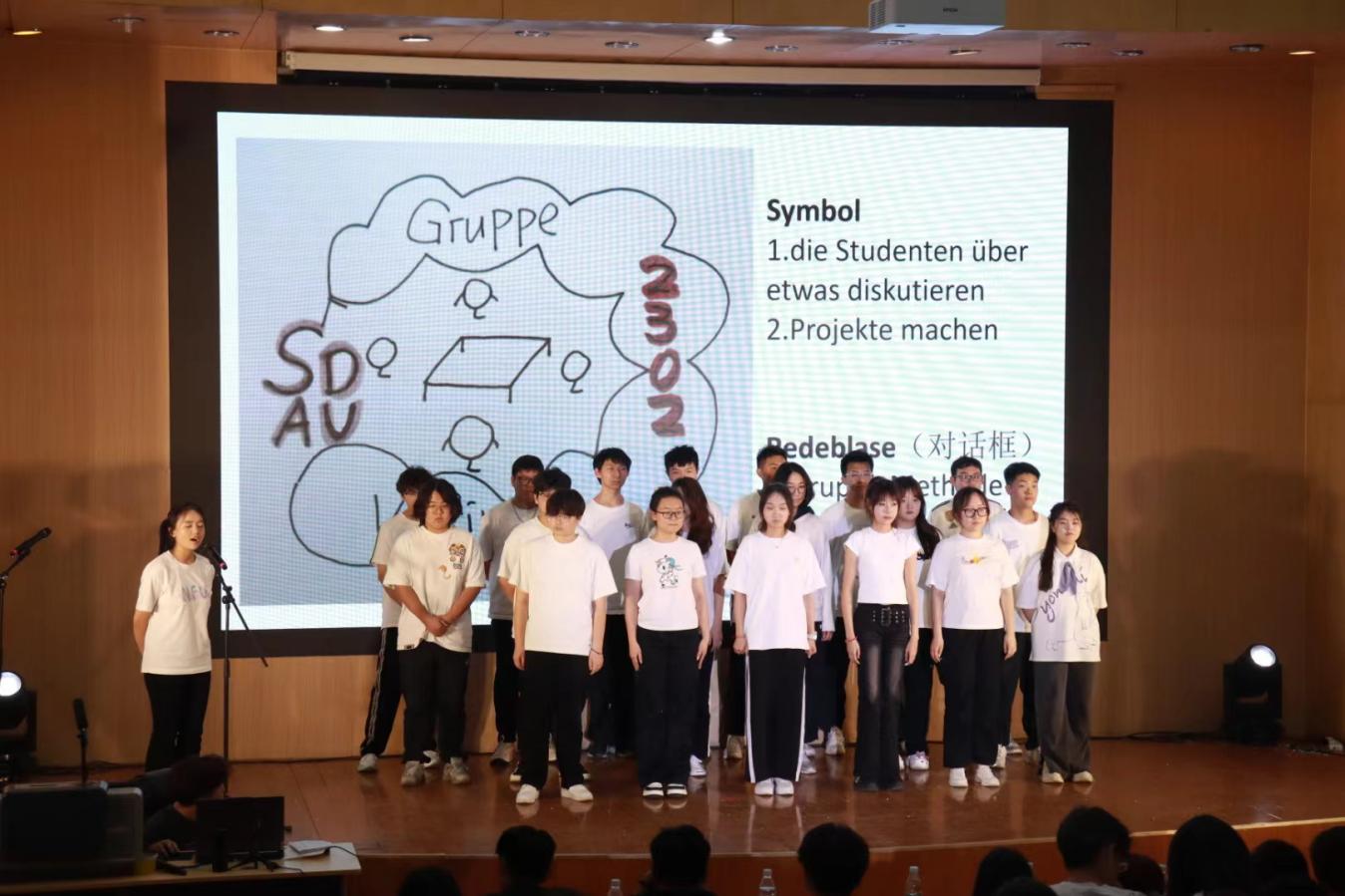 本次大赛精彩纷呈,以汉语、德语为主要表达方式,大赛主要分为三个环节进行比拼。第一个环节是班徽及班级文化介绍,各班代表采用中德双语介绍自己的班级,展示各班曾获得的荣誉和成绩。第二个环节是班级全体同学合唱德语歌曲,通过音乐展现班级的德语水平以及班级的凝聚力和向心力。第三个环节是展示各班特色才艺,各班成员发挥自身特长,用独具特色的方式展示自身德语功底,带给观众许多惊喜。