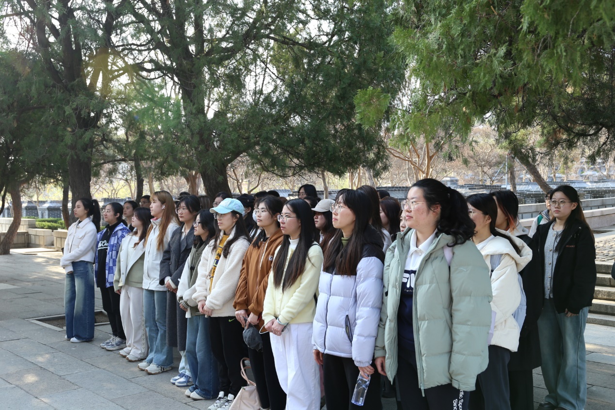 在庄严肃穆的烈士纪念碑前,全体成员列队肃立,向为民族独立和人民解放事业英勇献身的烈士们鞠躬默哀。高耸的纪念碑上,那一抹金色熠熠生辉,仿佛诉说着那段烽火连天的峥嵘岁月。同学们缓步绕行纪念碑,瞻仰碑文与浮雕,铭记历史,汲取力量,感受先烈们舍生忘死、前赴后继的伟大精神。