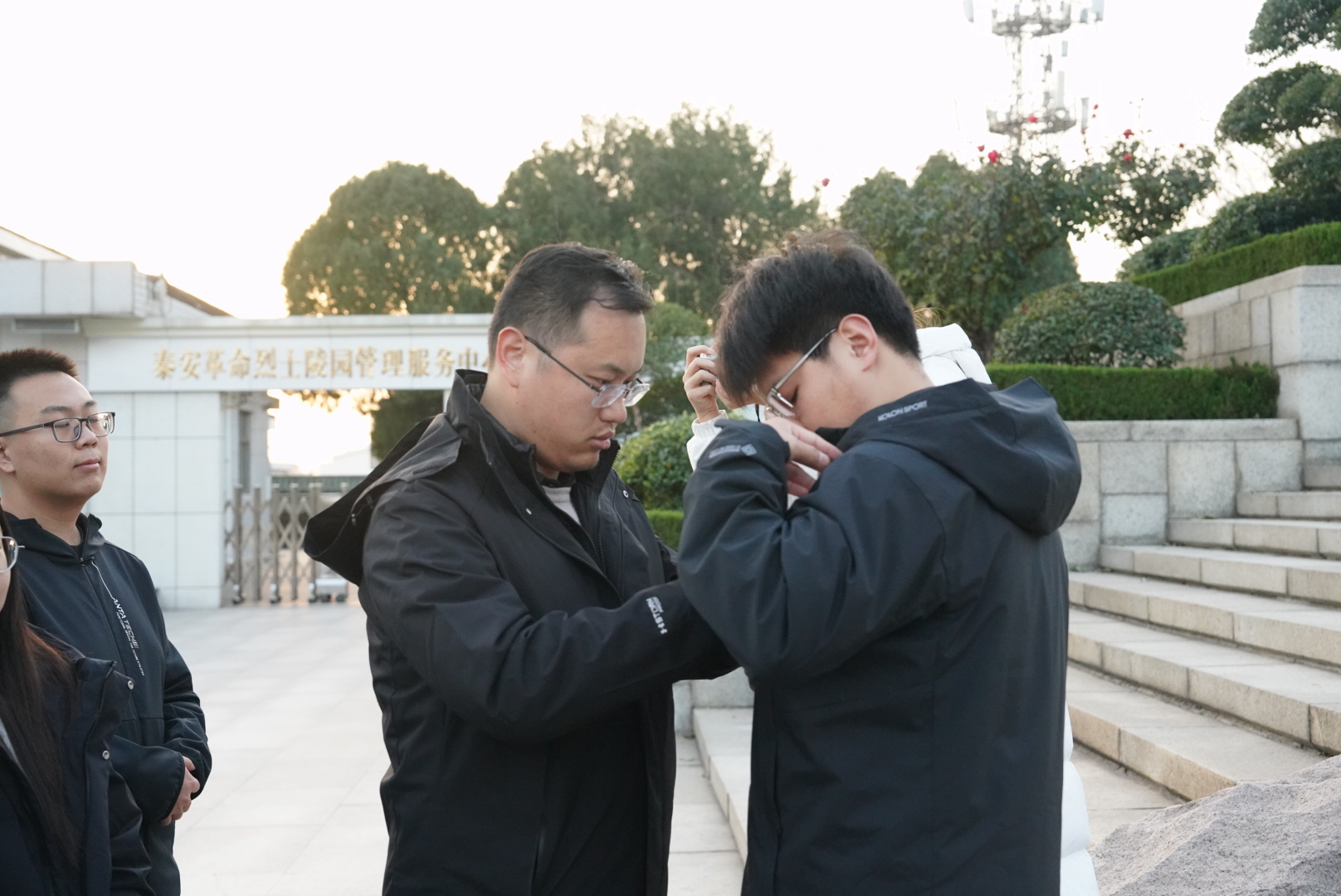 为加强青年思想引领,筑牢信仰根基,国交学院于11月28日在泰安市烈士陵园举行2025年下半年新发展团员入团仪式暨主题团日活动。