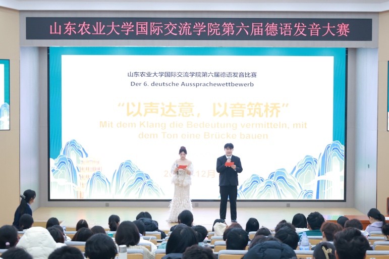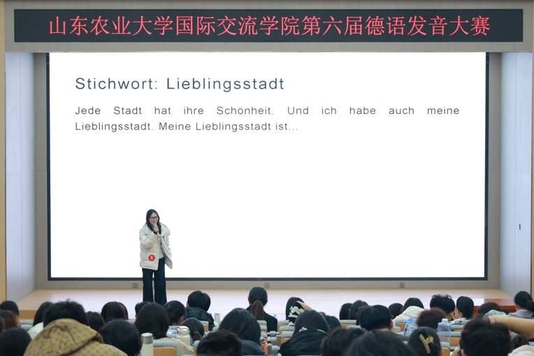 2025年12月10日,国际交流学院第六届德语发音比赛在菽睿楼124教室举行。学院领导及全体德语教师出席活动,2025级全体学生共同参与。本次活动旨在提升学生的德语语音素养,强化口语实践能力,营造优良语言学习氛围。