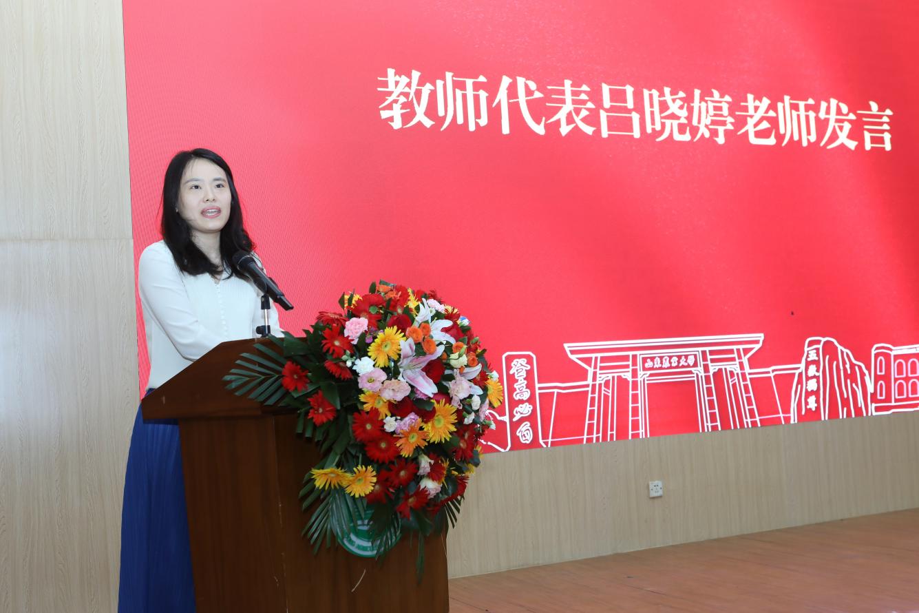 教师代表吕晓婷发言。她代表国际交流学院全体教师向230名毕业生致以最热烈的祝贺。她衷心地祝愿每一位同学:目有山川,做一个追梦路上志存高远的人。